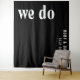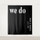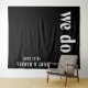 Foto de fondo boda negro moderno con un diseño simple y mínimo con "lo hacemos" en tipografía contemporánea audaz. El color de las fuentes puede cambiarse a cualquier color que elija en la herramienta de edición de diseño. Este telón de fondo fotográfico es ideal para una boda, una fiesta de compromiso o una ducha de novia.