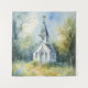 This serene countryside scene captures a quaint white chapel nestled at the end of a winding dirt path, surrounded by blooming wildflowers and softly swaying grasses. Rendered in a delicate watercolor style with painterly splashes and gentle light, the composition evokes peace, nostalgia, and quiet faith. The wildflower meadow—full of bluebells, daisies, and soft greens—creates a dreamy, almost ethereal foreground that leads the viewer’s eye toward the charming steepled church under a calm blue sky. Perfect for evoking a sense of retreat and reflection, this design works beautifully as seasonal decor, especially for spring and Easter themes. It pairs well in cozy cottagecore spaces or country-inspired settings, bringing warmth and spiritual calm to any room. The golden cross atop the steeple and gothic-style arched doorway add vintage architectural charm while maintaining a harmonious balance with the natural surroundings. This is an inviting visual retreat into simplicity, faith, and nature. AI generated artwork.