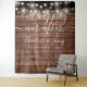 Con luces de cuerda de bonito y guión de tipografía de moda en un fondo de panel de madera, este rústico mostrador de fotos boda puede ser personalizado con sus nombres y fecha especial. Diseñado por Thisisnotme©