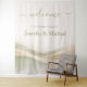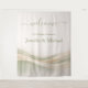 Printed on soft, lightweight fabric, this tapestry-style welcome sign offers a chic alternative to traditional rigid signage. It adds texture and visual interest while remaining easy to hang and transport. The calming, elegant color palette creates a refined atmosphere—ideal for modern, garden, spring, vineyards, or destination weddings.