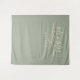 Elegante, moderno, verde sabio Sr. y señora boda fondo con corazón de cuerda dorada.