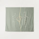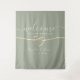 Elegante, moderno y sabio recibimiento en verde a nuestro entorno boda con corazón de cuerda dorada y escritura manuscrita simple.