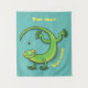¡Saludos de Gecko! Este diseño de lagarto feliz presenta un lindo reptil verde con un insecto en la vista. ¡Mucha diversión!