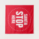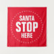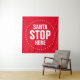 Santa Stop Here rojo y blanco adorable decoraciones navideñas de Tapiz Tapestry. rodeado por una delicada corona redonda de coquetos copos de nieve.