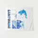 Santorini Grecia, gran escape para el verano Esta imagen representa una representación estilizada de Santorini, una isla griega conocida por sus impresionantes pueblos blancos y sus impresionantes puestas de sol. La imagen muestra un contorno azul de la isla de Grecia, con un énfasis destacado en Santorini. Se presenta una imagen estilizada de una iglesia tradicional de Santorini con una cruz sobre su cúpula, así como una representación de la icónica arquitectura azul y blanca. La palabra "SANTORINI" aparece en negritas letras negras, parcialmente oscurecidas por olas azules y blancas, que simbolizan el mar Egeo que rodea la isla. La imagen general es una representación simplificada y gráfica que evoca la belleza y el encanto de la isla.