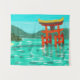 Una postal de bonito con el famoso santuario de Itsukushima. El santuario de Itsukushima es declarado Patrimonio de la Humanidad por la UNESCO.