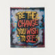 Este vibrante mural de graffiti presenta la inspiradora cita "Be the Change You Wish to See" en letras en negrita y coloridas. El mensaje es un llamado a la acción, alentando a los espectadores a tener un impacto positivo en el mundo.