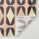 Seamless geometric pattern with dark brown leaf shapes, beige circles, and teal diamond accents. Retro and symmetrical design creates a vintage feel.