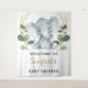 Este sencillo y elegante telón de bienvenida presenta un elefante bebé adorable y vegetación acuarela moderna en verde suave y dorado. Si desea cambiar el estilo de fuente, color o ubicación del texto, simplemente haga clic en el botón "Personalizar más".