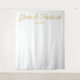Este telón de fondo fotográfico personalizado es hermoso, sencillo, minimalista y elegante. El diseño presenta los nombres de recién casados, fecha boda en tipografía de escritura dorada. Todos los personalizables, incluido el elegante, sofisticado y atemporal fondo blanco.