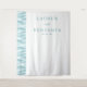 This wedding backdrop features a minimalist and elegant design with a serene color palette of soft teal hues on a crisp white background. The layout is vertically oriented, showcasing wavy lines in varying shades of light blue that create a subtle gradient effect along one side. Typography plays a key role, with names presented in a sophisticated serif font and the date in a modern sans-serif type, all centered for symmetry. The overall style blends classic and contemporary elements, making it perfect for formal celebrations, while the clean aesthetic conveys a calm and inviting atmosphere ideal for capturing memorable moments.