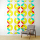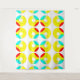 Círculos dentro de círculos, orbas de gentileza Los anillos rotan dentro de los anillos sobre círculos vivos amarillos, acuáticos y rojos sobre un fondo blanco.