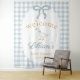 Perfect for a baby boy shower, goose themed baby shower, blue gingham baby shower, preppy baby shower theme, or vintage inspired celebration, this personalized baby shower backdrop tapestry brings charm, warmth, and timeless style to your event while creating a beautiful setting for photos you’ll treasure forever.