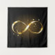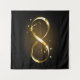 Oro, símbolo de infinito de joyas con estrellas doradas sobre fondo negro. Diseño con estrella dorada.