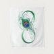 El símbolo del infinito con una pluma de pavo real brillante, verde y artística sobre un fondo blanco. Estilo tatuaje.