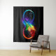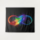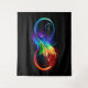Símbolo de infinito dibujado artísticamente con una hermosa pluma arco iris sobre fondo blanco. Estilo tatuaje.
