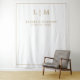 Telón simple para cabina de fotos de boda con un diseño moderno y elegante con tu monograma de dos letras junto con tus nombres y fecha rodeados de un borde delgado. Todo el texto es en dorado sobre fondo blanco y los colores del texto y del fondo pueden cambiarse a los colores que desees. Un diseño chic y elegante que es ideal para una pareja minimalista. Este telón personalizado es ideal para tomar fotos con los invitados en la recepción de tu boda.