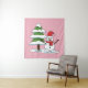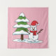 Un ilustracion de un adorable muñeco de nieve con un lindo bonete rojo y un pino nevado. La nevada en invierno es una de las mejores experiencias de esta temporada, sin mencionar que los niños y adultos pueden hacer sus propios muñecos de nieve y divertirse tirando bolas de nieve. ¿Cuáles son tus recuerdos felices con la nieve?