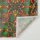 Los patrones vibrantes e intrincados forman un diseño caleidoscópico con arreglos simétricos y colores vivos. Las formas interactúan con verdes, rojos y púrpura, creando un efecto visual dinámico y dinámico.