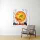 A Halloween-themed image featuring a large orange full moon with silhouetted bats flying across it. In the center of the moon, there is a large square root symbol over the number 4489. Below the moon, three glowing carved jack-o'-lanterns sit among rocks, fallen autumn leaves, and dried tree branches. The overall atmosphere is spooky and festive, combining mathematical elements with a holiday scene.