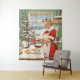 En una acogedora cocina cubierta de nieve, la Sra. Claus es capturada en medio de la cocción de vacaciones. Vestida con un vestido rojo festivo con mangas de piel cortadas y un delantal a juego, sonríe cálidamente mientras prepara una nueva tanda de galletas. La escena está llena de Navidades que se alegran, con un árbol bellamente decorado con latas de caramelo y adornos rojos, mientras que la nieve cae suavemente por la ventana, añadiendo a la atmósfera mágica de la temporada.