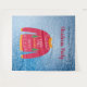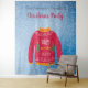 Una alfombra para una divertida temporada navideña y fiestas de Navidad, cenas. Un fondo azul con nieve. Decorado con un horrible suéter de Navidad rojo, blanco, naranja y verde. Personaliza y añade el nombre de tu familia, letras negras. El texto: Fiesta de Navidad está escrito en rojo con una moderna letra manuscrita. Se puede utilizar como letrero de bienvenida, decoración de pared de fiesta o como fondo para cabina de fotos.