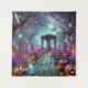 Susurros Más allá del Tapiz del Arco Bajo el resplandor atento de una luna llena, un arco enredado se adentra en un camino de adoquín rodeado de velas parpadeantes y lámparas de jack-o' talladas. Los fantasmas etéreos se desvían silenciosamente cerca de las tumbas antiguas, con su presencia iluminada por orbas flotantes en tonos verdes, azules y violetas. Los murciélagos vuelan a través del cielo crepúsculo mientras las flores moradas y el follaje otoñal tejen un tapiz de encantamiento a lo largo del camino. Este jardín espectral se mueve con magia silenciosa, donde cada sombra guarda un secreto y cada luz se siente como un recuerdo renacido.