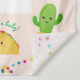 ¿Tienes una fiesta de bebé con tema de tacos? Te encantará esta colorida alfombra de bienvenida con el lema "Taco bout a baby". Cuenta con personajes de tacos, cactus y aguacates muy lindos con luces de colores en la parte superior e inferior. El texto dice Bienvenidos a la fiesta de bebé de "[nombre de la mamá]" con "Taco bout a baby" debajo. Fácil de personalizar con tus propios detalles y colores.