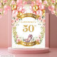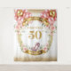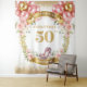 Celebra con estilo con este impresionante banner de fondo de cumpleaños número 50, diseñado con elegantes flores de acuarela boho en color blush, zapatos de tacón alto rosados y acentos de brillo dorado. Perfecto para celebraciones de cumpleaños importantes, esta alfombra personalizada crea un punto focal hermoso para cabinas de fotos, mesas de postres, exhibiciones de regalos y entradas de fiestas. Las flores femeninas en color blush combinadas con detalles dorados glamurosos agregan un toque moderno y boho-chic ideal para honrar una ocasión tan especial.