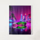 Vehículo deportivo fluorescente inspirado en los años 80, que irradia tonos vivos de verde neón, rosa caliente y azul eléctrico. El coche está decorado con líneas angulosas y nítidas, y tiene un perfil aerodinámico bajo que recuerda a una estética retro-futurista. Acelera por un camino mojado y elegante que refleja su vibrante resplandor. Alrededor de la escena hay palmeras, signos brillantes y rascacielos iluminados con luces de neón, todo ello bajo un cielo nocturno degradado que pasa de violeta profunda a naranja. Todo el ambiente refleja la audaz y sintetizada vibra de los años 80, mezclando nostalgia con energía futurista.