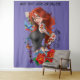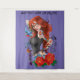 Una mujer de cabello rojo con un tanque gris y vaqueros azul denim. Tiene dos mangas de tatuajes de brazo completo. Todo dibujado en un nuevo estilo escolar de historietas.