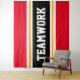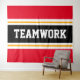 Este diseño deportivo y atlético presenta texto en negrita de TEAMWORK dentro de una banda negra ancha realzada con doble franjas de carreras blancas y amarillas contra rayas de fondo rojo brillante. El texto de este diseño se puede personalizar.