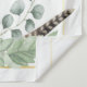 Telón de fondo de baby shower de elefante dorado con acentos de estilo boho con plumas y magnolia y adorable elefante bebé de acuarela. La adición ideal para la decoración de tu baby shower neutral.