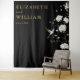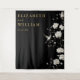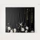 Este moderno y elegante telón de fondo de boda con estampado de chinoiserie floral negro y dorado puede ser personalizado con su información en tipografía chic. Diseñado por Thisisnotme©