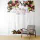 Elegante telón de fondo personalizado para cabina de fotos de boda de pareja con hermosas flores de borgoña, rosa claro y crema marfil con follaje verde y hojas. Fácil de personalizar con el título, nombre y fecha de su evento.