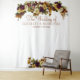 Elegante telón de fondo personalizado para cabina de fotos de pareja de boda con hermosas flores de color burdeos, naranja oxidado y crema marfil con follaje verde y hojas. Fácil de personalizar con el título, nombre y fecha de su evento.