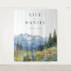 Este telón de fondo de cabina de fotos de boda de montañas de flores silvestres acuarela rústico moderno puede ser personalizado con su información en tipografía moderna. Diseñado por Thisisnotme©