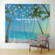 Esta divertida y personalizada tapicería de destino de playa tropical puede ser utilizada como telón de fondo para cabina de fotos y cuenta con una playa tropical, océano azul turquesa, botes, palmeras elegantes, luces de cuerda y su propio nombre y fecha de nacimiento en una fuente clásica de moda y escrita a mano. Este telón de fondo es perfecto para su fiesta de cumpleaños de playa tropical u otra celebración. Fácil de personalizar con su propio nombre y fecha. Elija entre varios colores diferentes de conjuntos de bolsas de frijoles para cada tablero. Por favor contácteme con cualquier personalización de diseño adicional que pueda necesitar. Fotografía de la playa y palmeras tomadas en la Isla Grande de Hawái y diseño © por TK Goforth. Para artículos coordinados, visite mi colección de Bodas de Playa Tropical y Luces de Cuerda y mi tienda Zazzle: