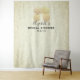 Plantillas de telón de fondo para cabina de fotos de despedida de soltera / boda - Pareja de piña dorada con papel damasco floral de fondo. ¡Un diseño perfecto para tu gran día! Todos los estilos de texto, colores y tamaños se pueden modificar según tus necesidades.