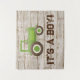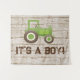 El telón de fondo de baby shower de granja presenta un tractor verde con un fondo de madera rústica. Este telón de fondo para baby shower se personaliza fácilmente para su evento agregando texto.