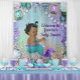 Telón de fondo de baby shower de sirena de joyas con adorable sirena afroamericana en un hermoso fondo de joyas. Este banner de baby shower de sirena afroamericana se personaliza fácilmente para su evento simplemente agregando su texto en el estilo de fuente y color que prefiera. También puede cambiar el tamaño según sea necesario.