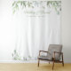 Telón de fondo floral acuarela rústica. Este diseño botánico simple y elegante presenta hojas de estilo acuarela de eucalipto en tonos de verde y blanco.