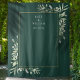 Con delicadas hojas de verdor en acuarela y un marco dorado sobre un fondo verde esmeralda, este elegante telón de fondo botánico para cabina de fotos de boda se puede personalizar con sus nombres y fecha especial. Diseñado por Thisisnotme©