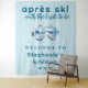 Cartel de bienvenida para despedida de soltera con temática de esquí de invierno Apres Ski - Decoración para cabina de fotos - Decoración personalizada para despedida de soltera en invierno - Despedida de soltera con temática Après Ski - La alfombra de bienvenida perfecta para una despedida de soltera con temática de esquí o un brunch de invierno de après-ski en un país de ensueño. Con ilustración de gafas de nieve en acuarela. Con una mezcla de fuente deportiva retro y escritura divertida sobre un fondo azul claro. Perfecto para una novia que ama el esquí y los deportes de invierno. Personalice este cartel de bienvenida editable para despedida de soltera de invierno con todos los detalles de su evento.