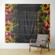 Fondos de girasoles amarillos dorados y rosas borgoña rojas oscuras en un fondo de madera de granero marrón oscuro con su caligrafía en tipografía dorada falsa que hace un hermoso telón de fondo rústico para cabina de fotos de boda. ++++++++++ Fácil de personalizar y perfecto para bodas temáticas rústicas tradicionales de finales de verano, otoño o invierno.