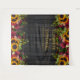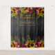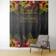 Fondos de flores amarillas de girasoles y rosas borgoña rojas oscuras con bordes en un fondo de madera de granero marrón oscuro con su texto personalizado en tipografía dorada falsa que hace un hermoso telón de fondo rústico para cabina de fotos de boda. ++++++++++ Fácil de personalizar y perfecto para bodas temáticas rústicas, vintage y tradicionales de finales de verano, otoño o invierno.