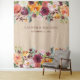 Este impresionante telón de fotomatón de boda cuenta con flores trendy de acuarela en tonos de marsala, borgoña, rosa y naranja, con hojas verdes. El fondo es de un aspecto de papel kraft beige.