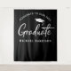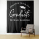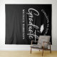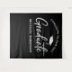 Un moderno telón negro para cabina de fotos para tu fiesta de graduación. "Felicidades a nuestro graduado de 2022" está escrito en una mezcla de tipografía blanca simple y una escritura blanca grande. Personaliza con tu nombre en tipografía blanca simple. Puedes cambiar los colores a los colores de tu escuela haciendo clic en "personalizar más".