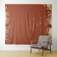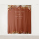 Tapiz Boda de Terracota. Haga una declaración audaz y romántica con este tapiz personalizado, con los nombres de la novia y el novio rodeados de acuarelas pintadas a mano de naranja quemado y hojas de terracota, dahlias de crema y beige blandos y rosas ricos de cobre y de color rojizo. Esta pieza, situada sobre un cálido fondo de cobre, es perfecta como telón de fondo fotográfico, decoración ceremonial o acento de recepción. Infunde su espacio con calidez y elegancia: personalizar su tapiz para un toque único.