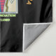 This design features a stained-glass-style illustration of The Annunciation, where the Angel Gabriel delivers his message to the Virgin Mary, with the Holy Spirit symbolized by a dove above them. The illustration is crowned by the curved text "GABRIEL'S MESSAGE TO MARY: AVE MARIA" and the title "THE ANNUNCIATION OF THE LORD" at the bottom, all set against a contrasting black background.